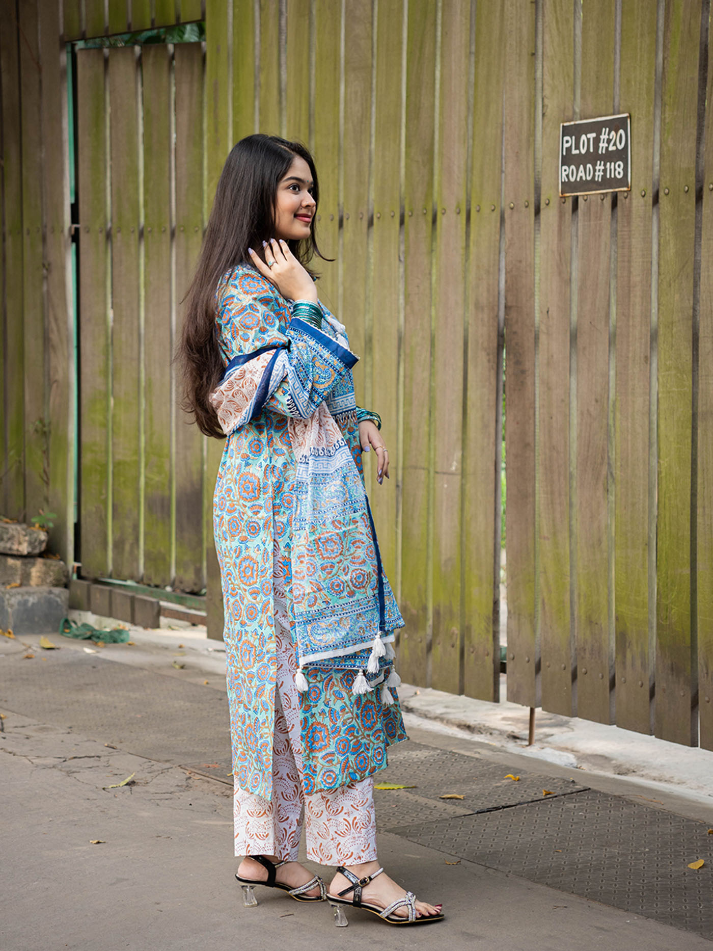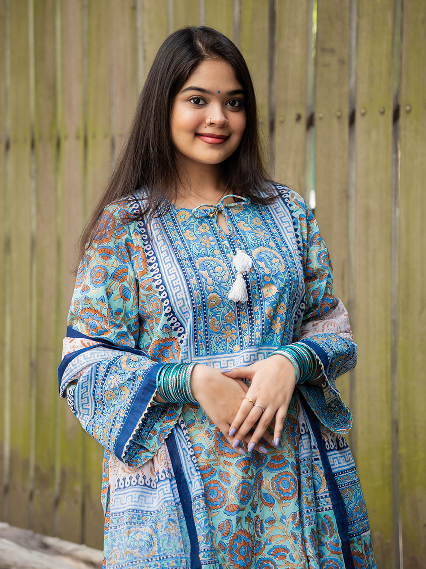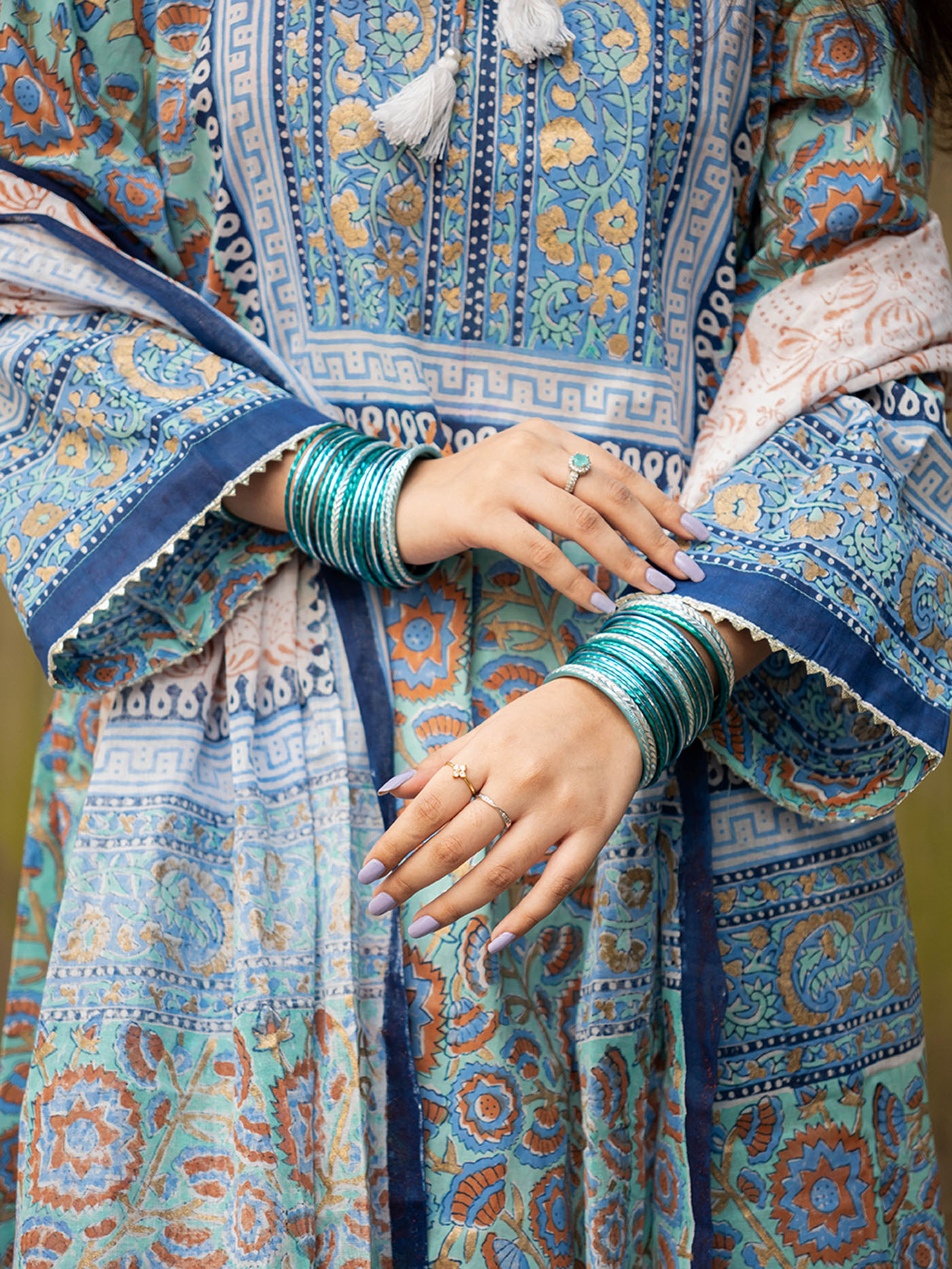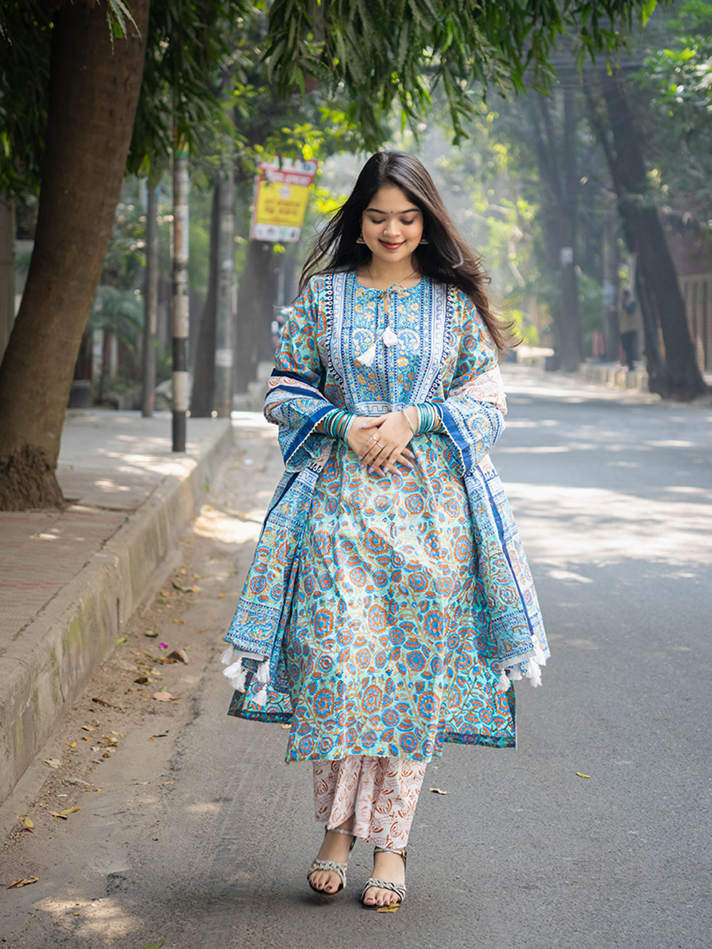 Details : Hand block printed luxury cotton kameez sets with block printed dupatta.