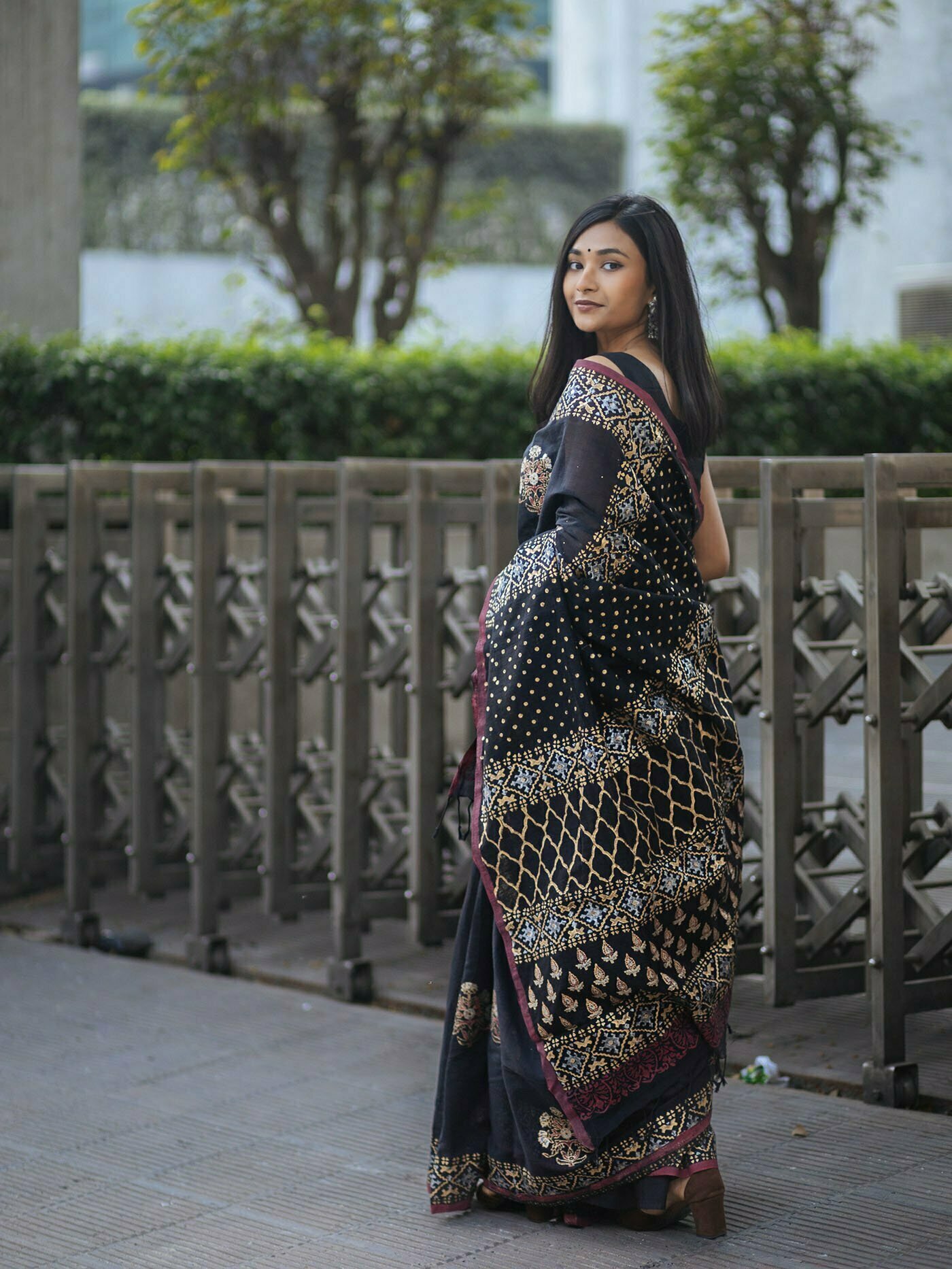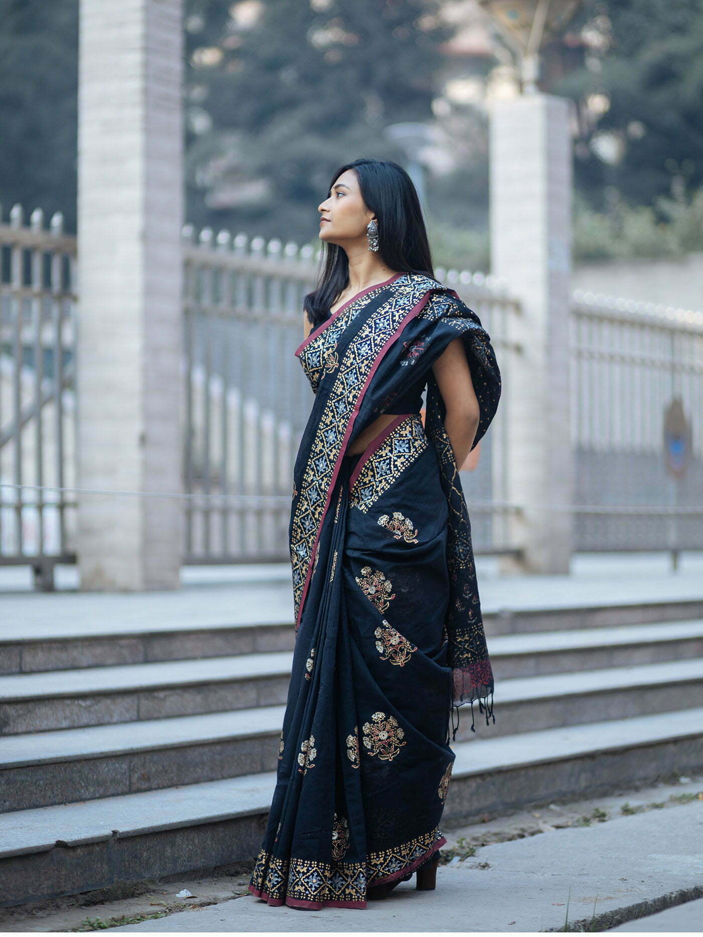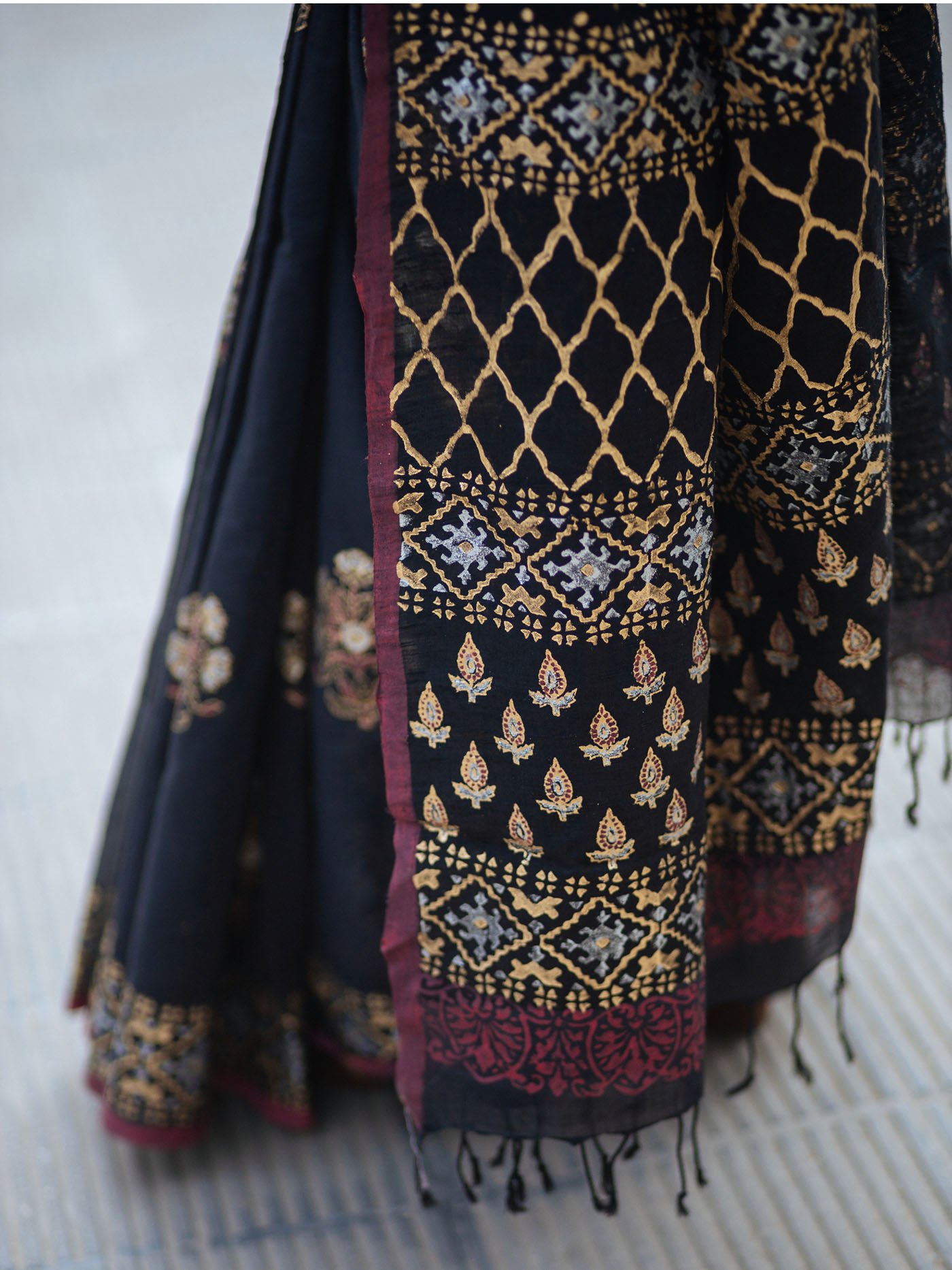 All over handblock printed Pure Handloom andi acchol cotton saree comes with seperate bluse piece.