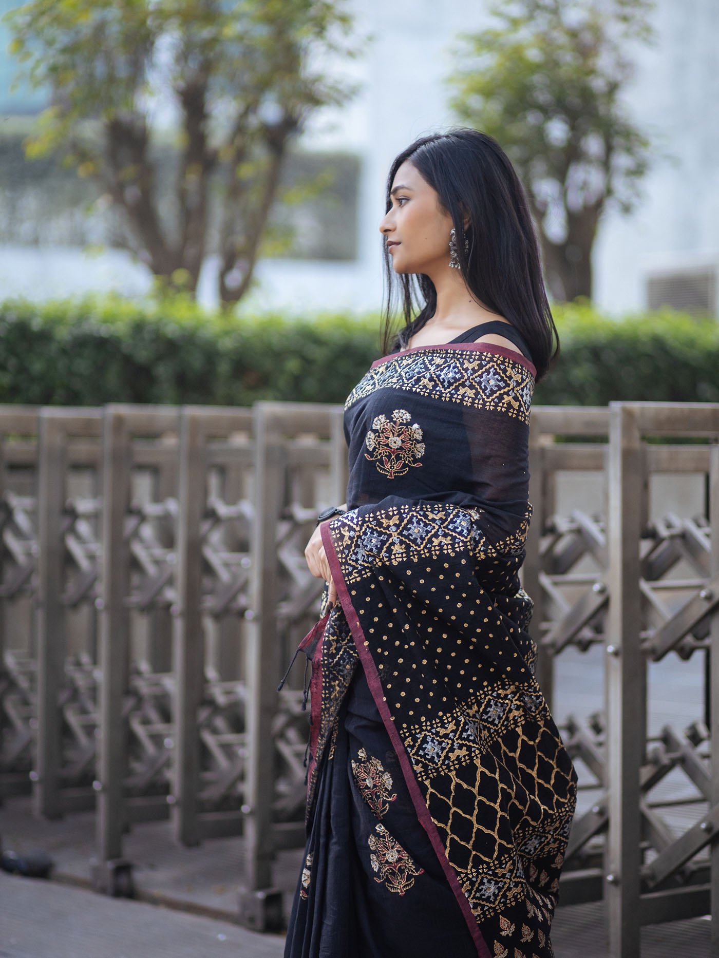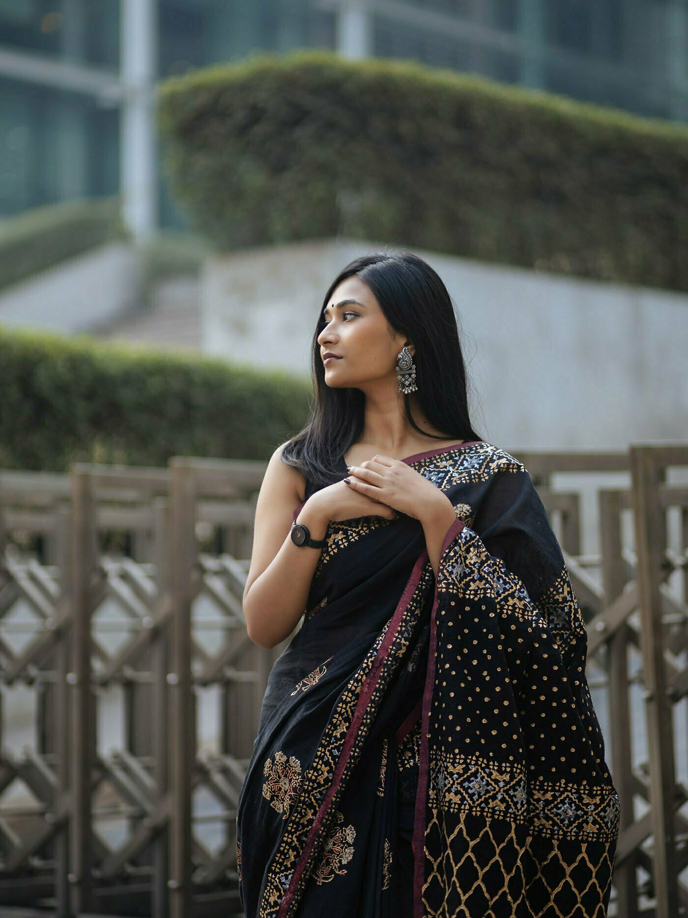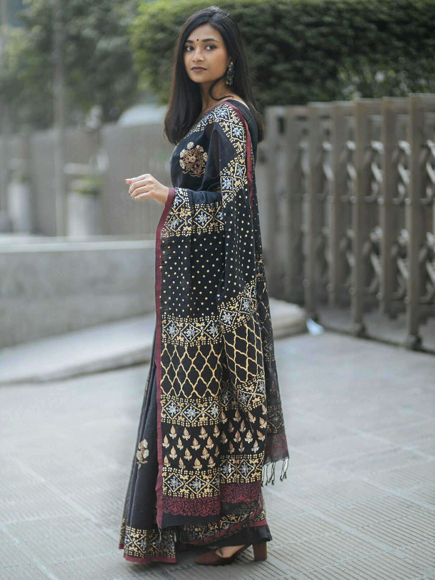 All over handblock printed Pure Handloom andi acchol cotton saree comes with seperate bluse piece.
